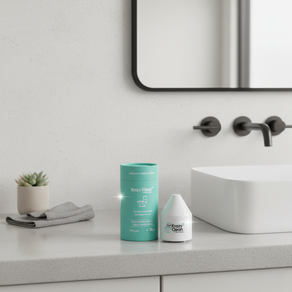 Get Krazy Clean keeps your toilet spotless automatically, so no scrubbing or harsh cleaners are needed.